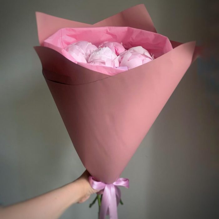 Лента – 3 шт.Упаковка дизайнерская – 4 шт.пион рене хортенс – 7 шт.