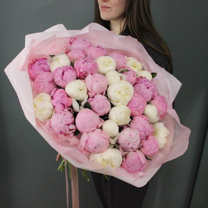 Букет из 35 пионов, в лаконичной упаковке.Стильное цветочное решение для любого случая.
