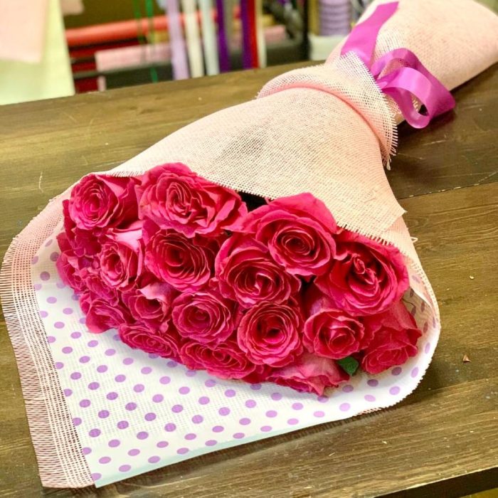 Букет из ароматных малиновых голландских роз сорта pink floid.