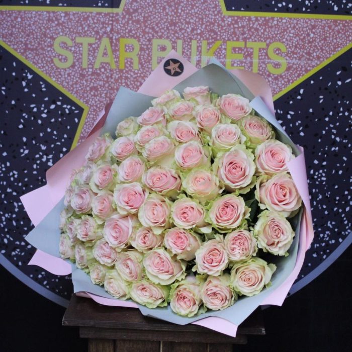 роза эквадор фруттето – 51 шт.Пленка дизайнерская – 5 шт.Лента атласная – 2 шт.